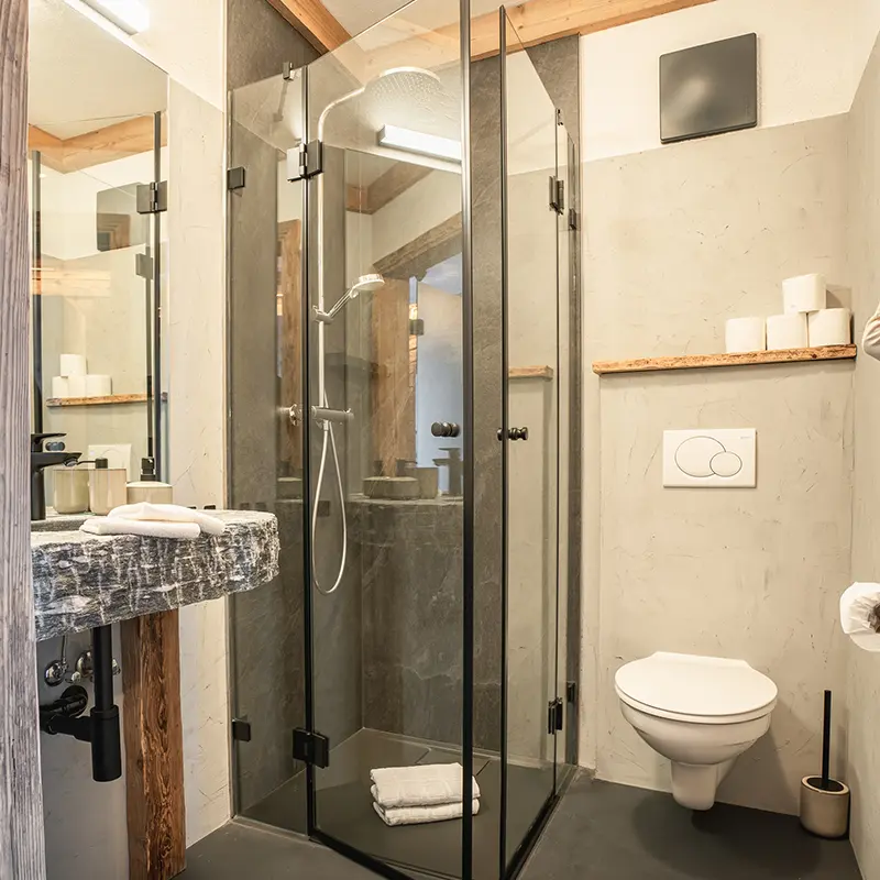 - 3 Doppelzimmer mit eigenem Bad mit Dusche/WC