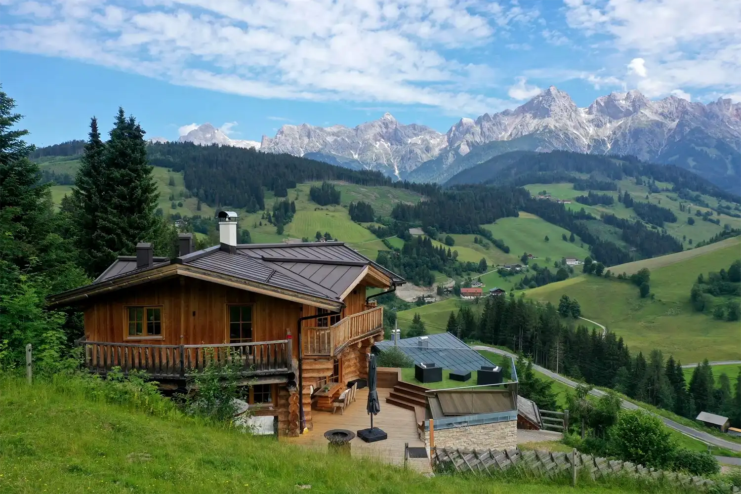 Die Idee entstand 2001 in einer kanadischen Blockhütte während eines Skiurlaubs – das Gefühl von Holz, Wärme und Geborgenheit ließ uns nicht mehr los. Also suchten wir nach dem perfekten Platz für eine eigene Hutte: mit Aussicht, direkt an der Piste, das ganze Jahr erreichbar.